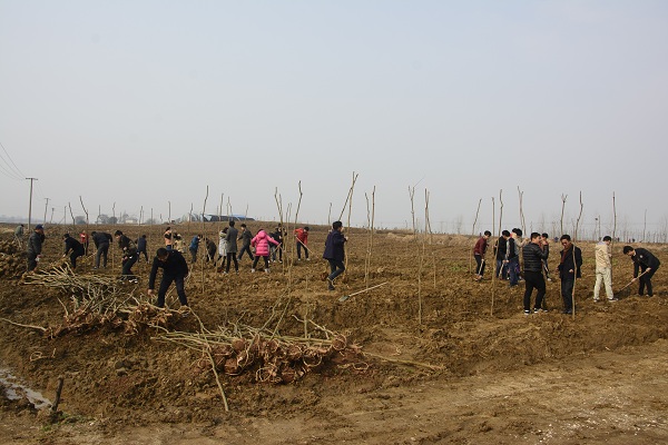 长临河古镇位于合肥市东郊,肥东县南部,西与合肥市滨湖新区仅一河之隔。经过近一个小时车程后,大家直接奔赴划定的植树区域。大家互相协助,挖坑、扶树、松土、埋树,动作敏捷,一气呵成,共义务种植树苗400余棵。一棵棵树苗在大家的辛勤培植下,挺立在温暖的春阳,原本比较荒凉的土地顿时显出了生机。