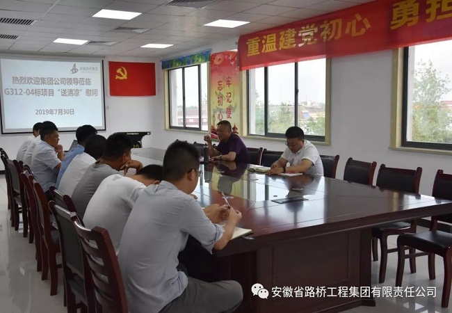7月30日,建工控股党委委员、董事、副总经理杨广亮到六安g312项目开展“送清凉”慰问活动,并深入调研项目管理工作。建工控股发展规划部部长余志刚陪同调研。