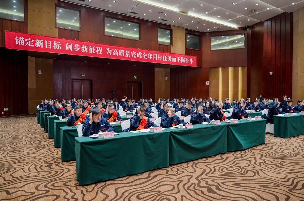 会议表彰了公司2023年度先进集体及先进个人,签订了《集体合同》和2024年党建、发展、安全目标责任书。