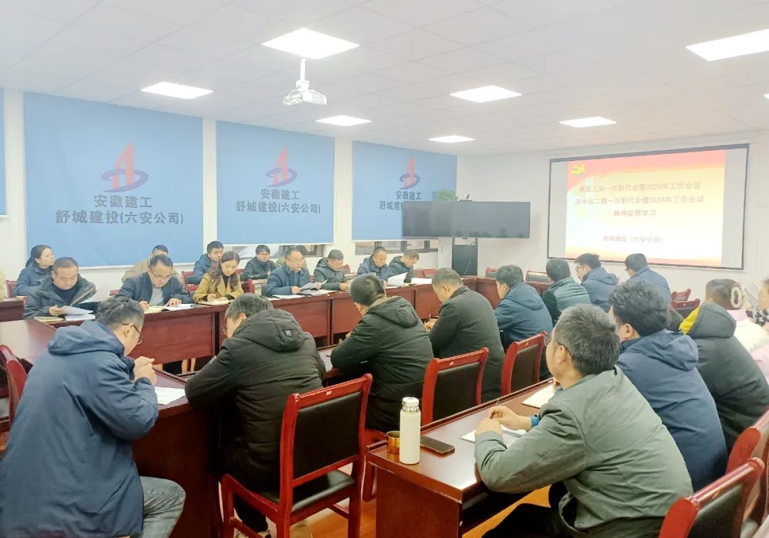 3月5日,舒城建投(六安公司)召开专题会议传达学习集团和公司两级职代会暨工作会议精神。会议强调,一要思想行动相统一,切实把会议精神与当前各项工作紧密结合起来;二要紧盯目标抓落实,强管控、抓质量、保安全、促进度、控风险,多措并举,吹响提质增效工作冲锋号;三要抢抓机遇拓市场,凝心聚力再出发,力求实现新突破;四要加快公司资质升级,优化资源配置,提高核心竞争力。以实际行动助力公司高质量发展、集团转型发展高质量发展大发展。