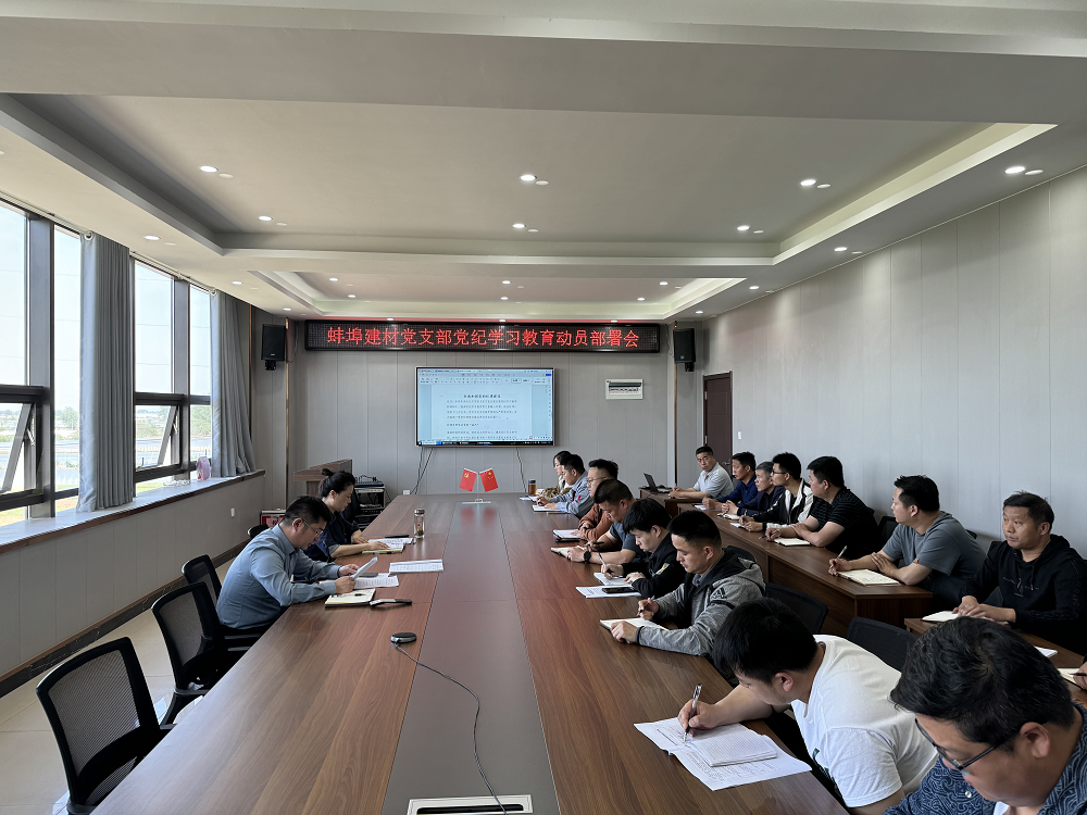 蚌埠建材党支部召开党纪学习教育动员部署会,认真学习《习近平总书记关于加强党的纪律建设相关论述》,传达学习建工集团《关于开展党纪学习教育的通知》《蚌埠建材党支部关于党纪学习教育的学习计划》。