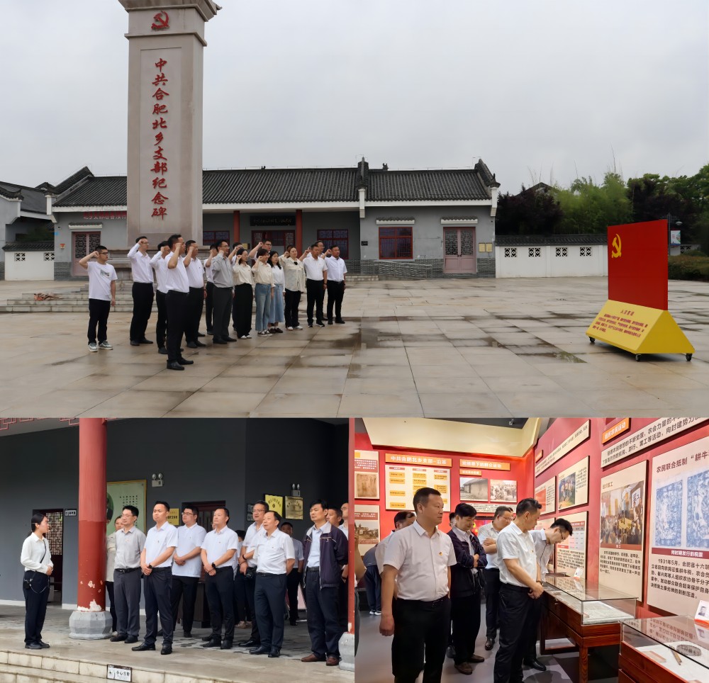 中共合肥北乡支部纪念馆是安徽省爱国主义教育示范基地、合肥市廉政教育基地。参观前,由张俊同志带领全体党员肃立在鲜红的党旗前,庄重地举起右拳,重温入党誓词。随后,在讲解员的带领下,党员们从弥足珍贵的史料文物中,了解了以崔筱斋为代表的革命先烈创建合肥地区第一个党组织的始末以及建立安徽省农民运动委员会、领导双河集农民暴动的革命历史,深刻感悟革命先烈无比坚定的理想信念和无私奉献的革命精神,学习了他们以党纪为尺的忠诚担当和优良作风。