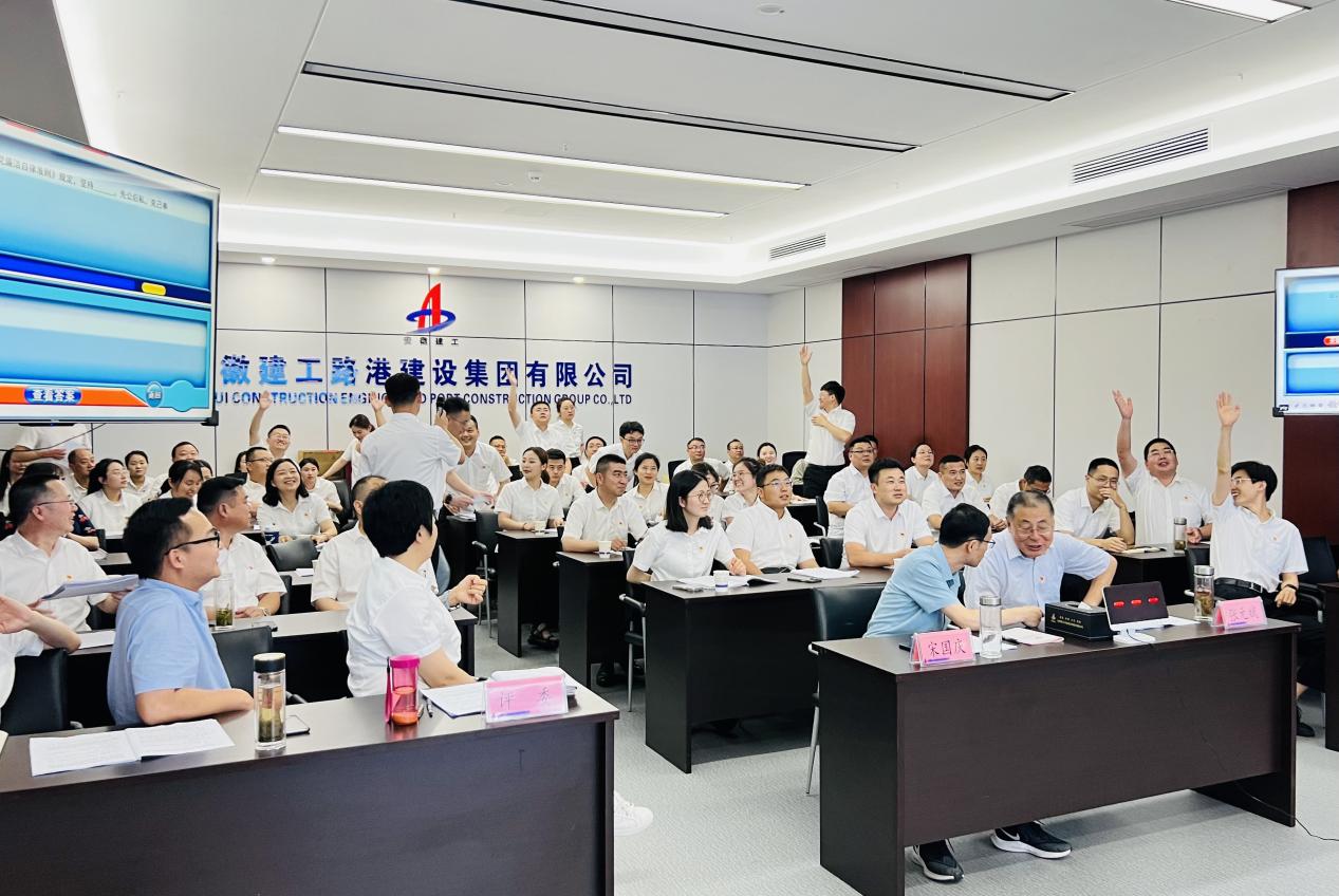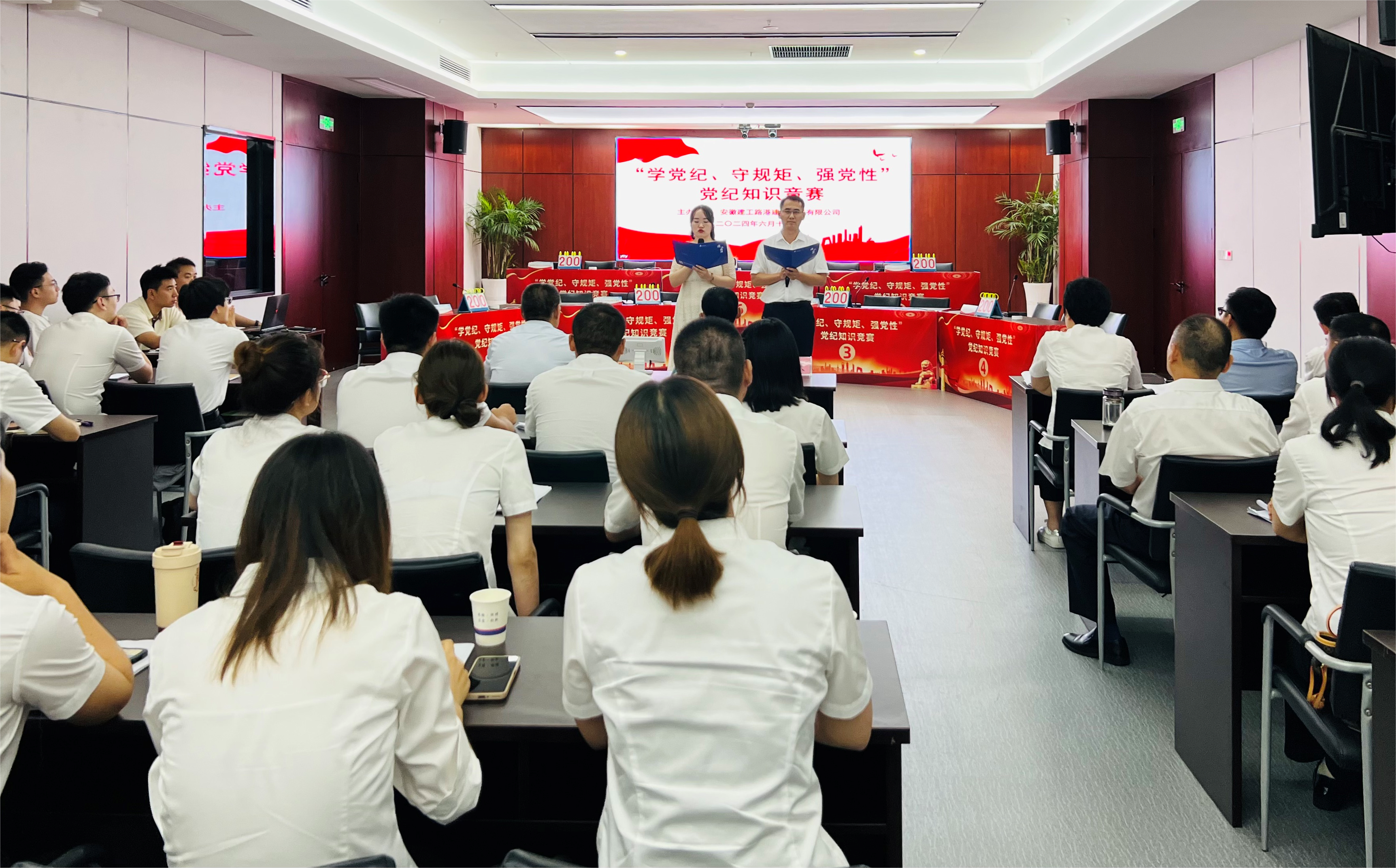6月18日下午,建工路港“学党纪、守规矩、强党性”党纪知识竞赛在芜湖总部一楼报告厅成功举办。公司党委委员、副总经理宋国庆,财务总监张元斌出席活动。来自公司机关、所属各单位的14支队伍参赛。