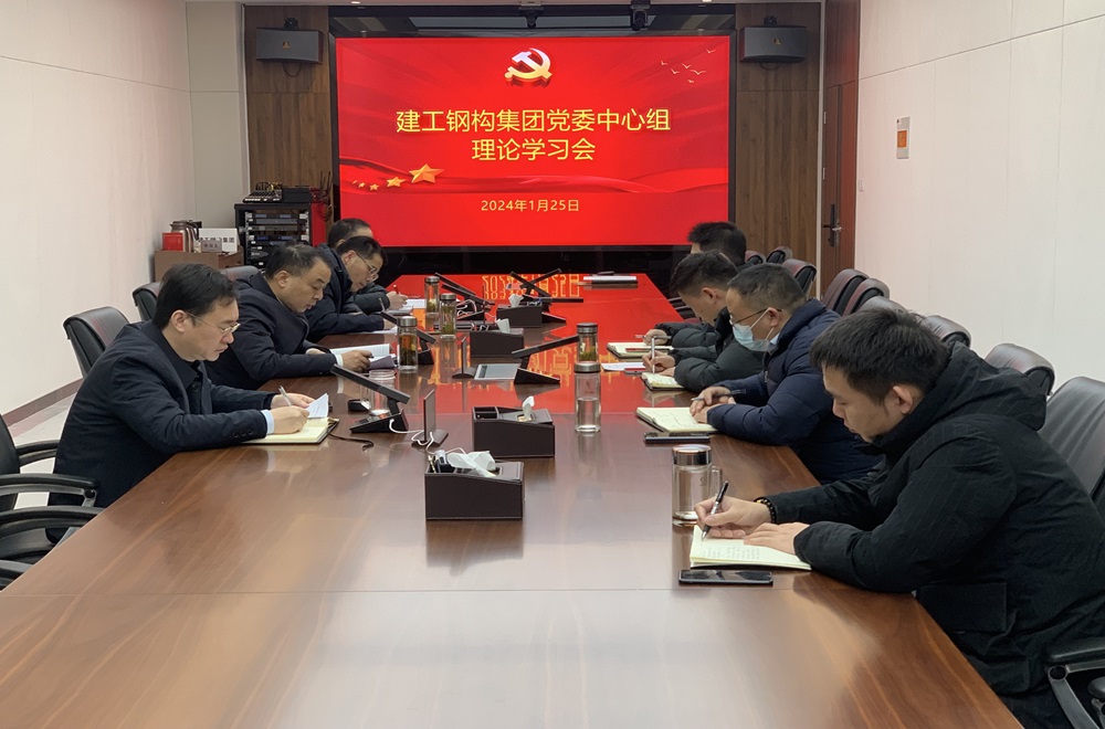 1月25日上午,建工钢构集团党委召开2024年第1次理论学习中心组学习会。公司党委副书记、总经理江仲明主持会议,公司领导班子成员、机关各部门主要负责人参加。