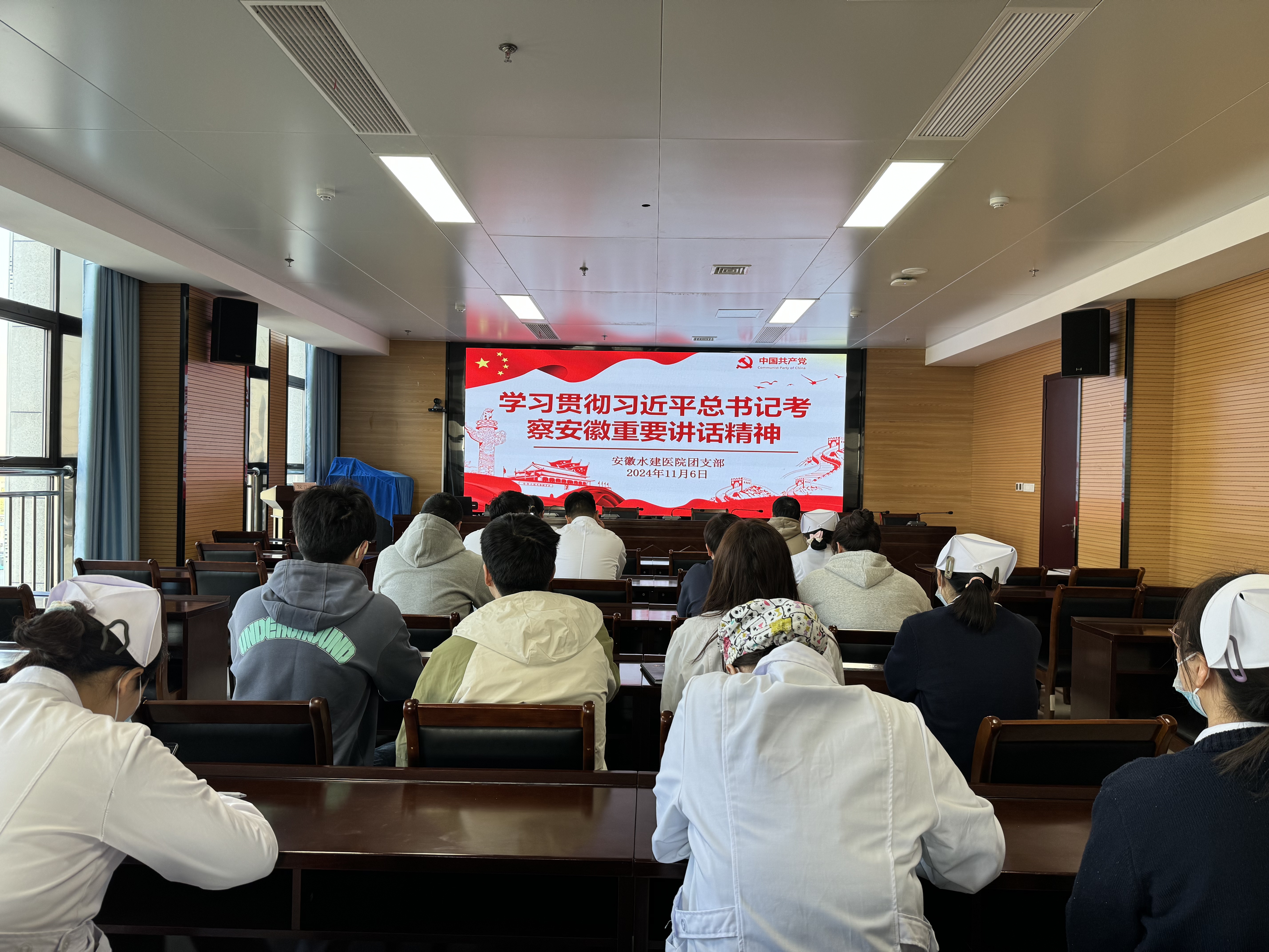 11月6日下午,安徽水建医院团支部开展专题学习会议,集中学习习近平总书记在安徽考察时的重要讲话精神,临床各部室共20余人参加学习。