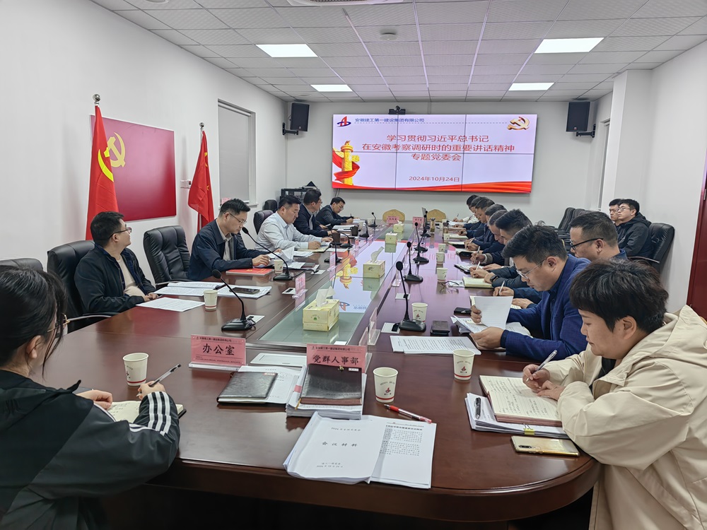会议要求,一是公司所属各党支部要结合习近平总书记考察安徽重要讲话精神和工作实际,认真开展学习研讨,学出对习近平总书记的绝对忠诚、学出责任担当、学出推动高质量发展的具体举措。二是要加强科技创新能力,不断提高项目盈利能力和企业核心竞争力。三是要全力以赴完成年度目标任务,提前谋划好2025年各项工作,用实际行动奋力开创一建高质量发展新局面。