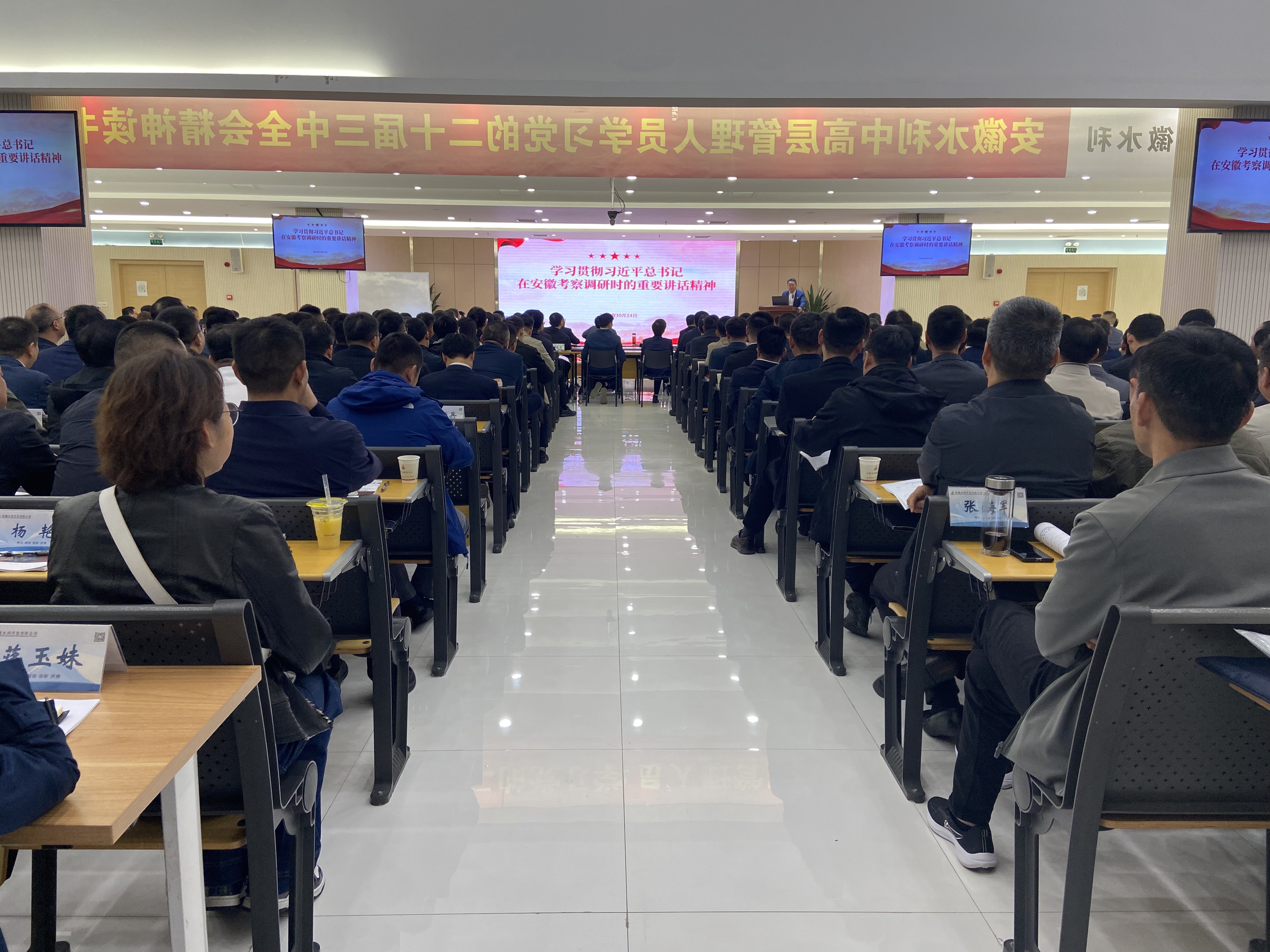 10月24日,安徽水利党委理论学习中心组召开扩大学习会议,传达学习贯彻习近平总书记考察安徽重要讲话精神。建工股份党委委员、副总经理、安徽水利党委书记、董事长张键主持会议并讲话。安徽水利党委理论学习中心组成员及全体中层管理人员参加会议。