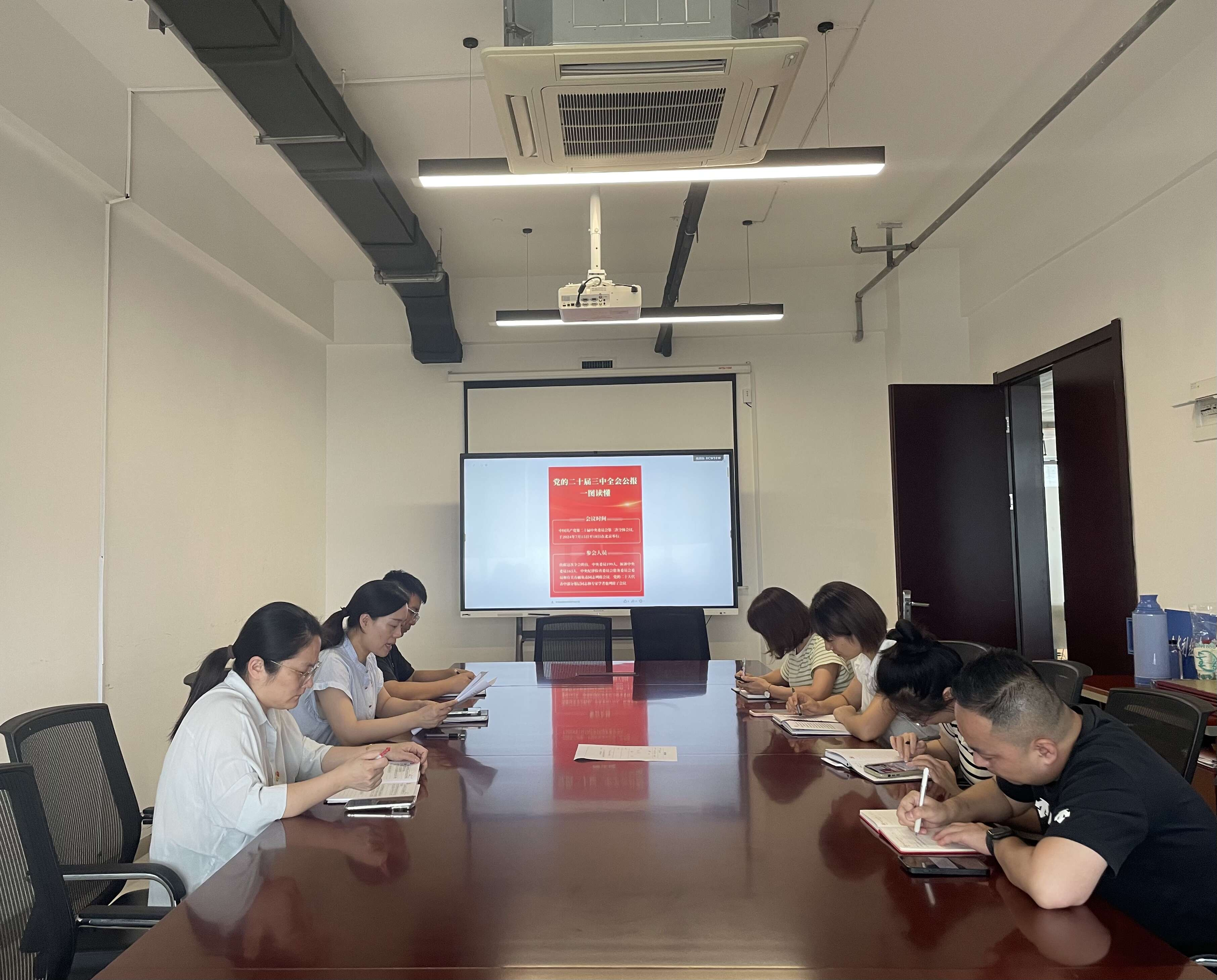 7月25日上午,监理公司党支部组织学习中国共产党第二十届中央委员会第三次全体会议公报和《关于落实过紧日子要求 压降管理费用提质增效的通知》。会议要求,全体干部要深化思想认识,把学习好、传达好、贯彻好、落实好全会精神作为当前及今后一个时期的重要政治任务落实落细,以全会精神引领和推动企业发展。