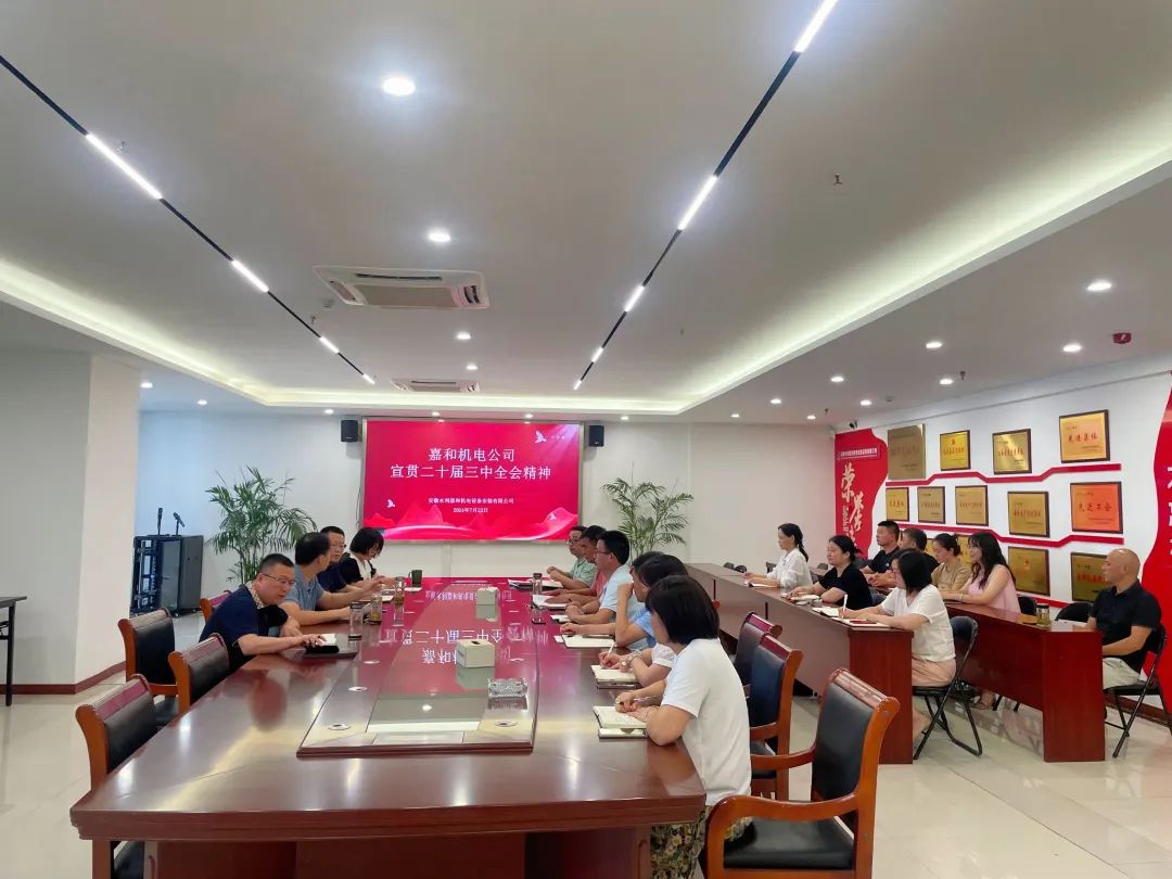 嘉和机电党支部召开集体学习会,传达学习贯彻党的二十届三中全会精神,要求结合嘉和机电生产经营实际,把宣贯落实会议精神转化为推动企业改革发展的动力,立足全年目标任务,向着做专做精做强企业发展目标迈进。