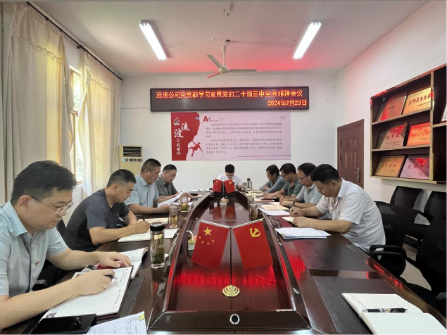 一分公司党总支专题学习宣贯党的二十届三中全会精神,强调要动员引领一线职工结合实际、立足本职岗位抓好贯彻落实,把学习宣传贯彻全会精神与生产经营紧密结合,将学习全会精神转化为打造水利施工标杆示范企业的务实行动。