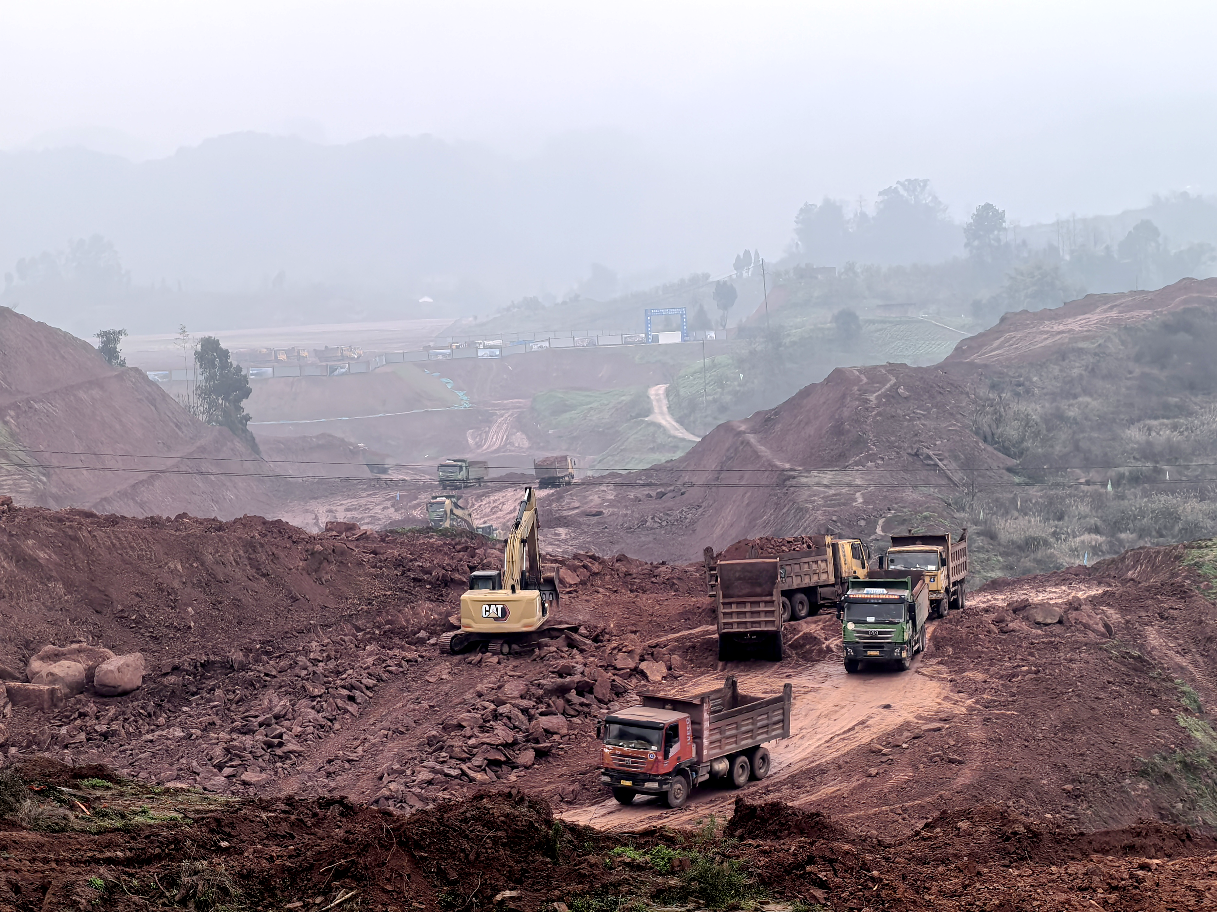 在川渝路二期项目,项目开启“进场即大干”模式,仅用20天就完成特殊路基施工任务,开启了路基大规模填筑工序。针对沿线水田区域采用“分层碾压 碎石垫层”工艺实现高效换填,有效解决了软弱地基承载难题。