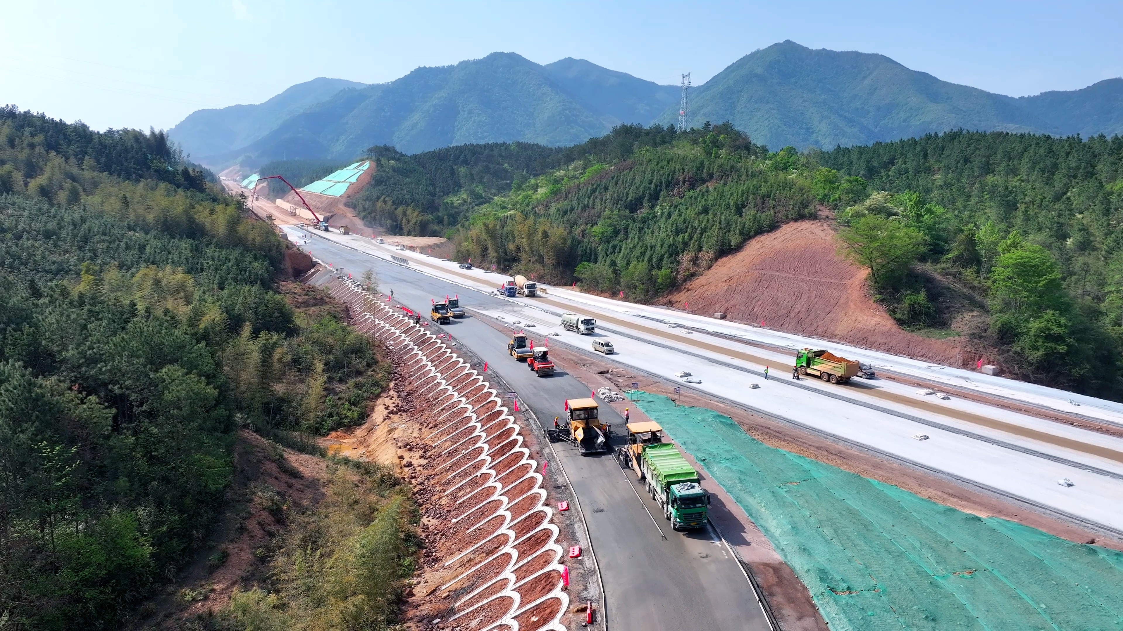 长三角大地上,处处闪烁着奋斗者的身影。在皖南的群山间,机械轰鸣,泾青高速的建设者们正进行水稳摊铺。安徽建工路桥泾青高速路基路面标项目经理部党支部副书记丁自亮介绍,当前泾青高速04标项目凤形庄隧道、合溪隧道、碧山隧道主体工程已全部完成、桥面系及主线路基已基本完成,路面水稳底基层完成39%,水稳基层完成37%,“计划5月中旬进行沥青施工。”