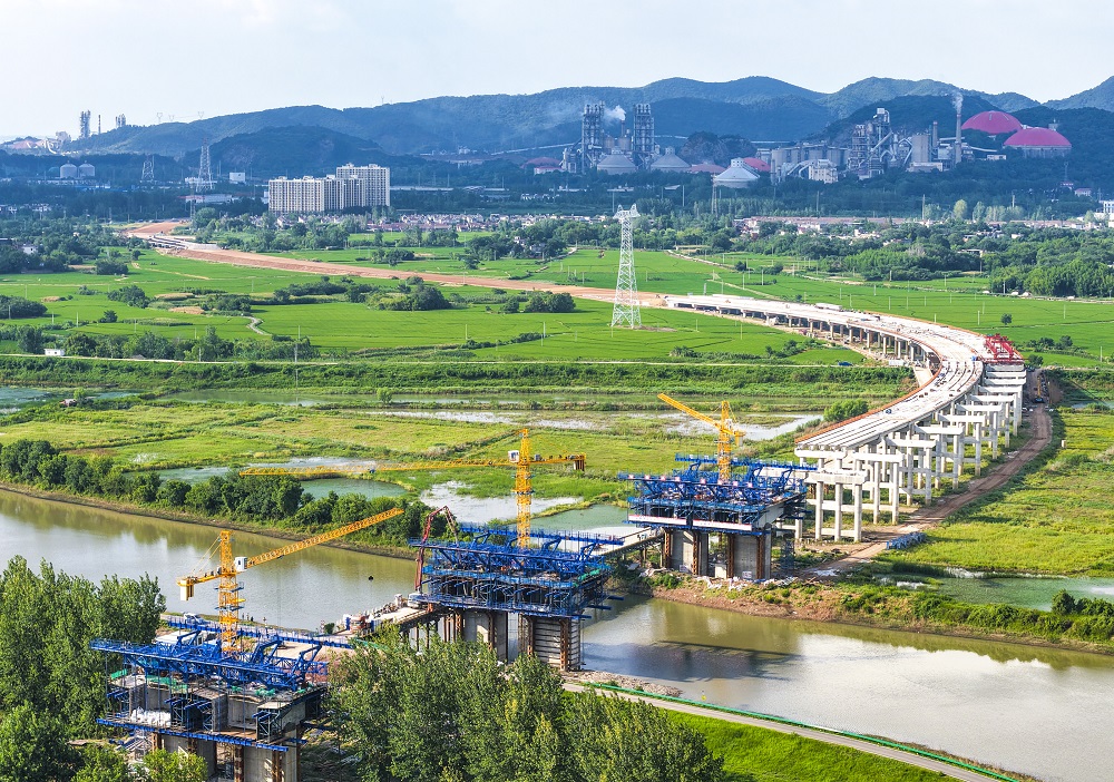 截至目前,黄浒河特大桥基础工程完成98%,下部结构施工完成97%,上部结构施工完成65%,桥梁主跨悬臂现浇、梁板架设、桥面系及护栏施工等作业面正同步推进,力争年底实现主桥合龙。