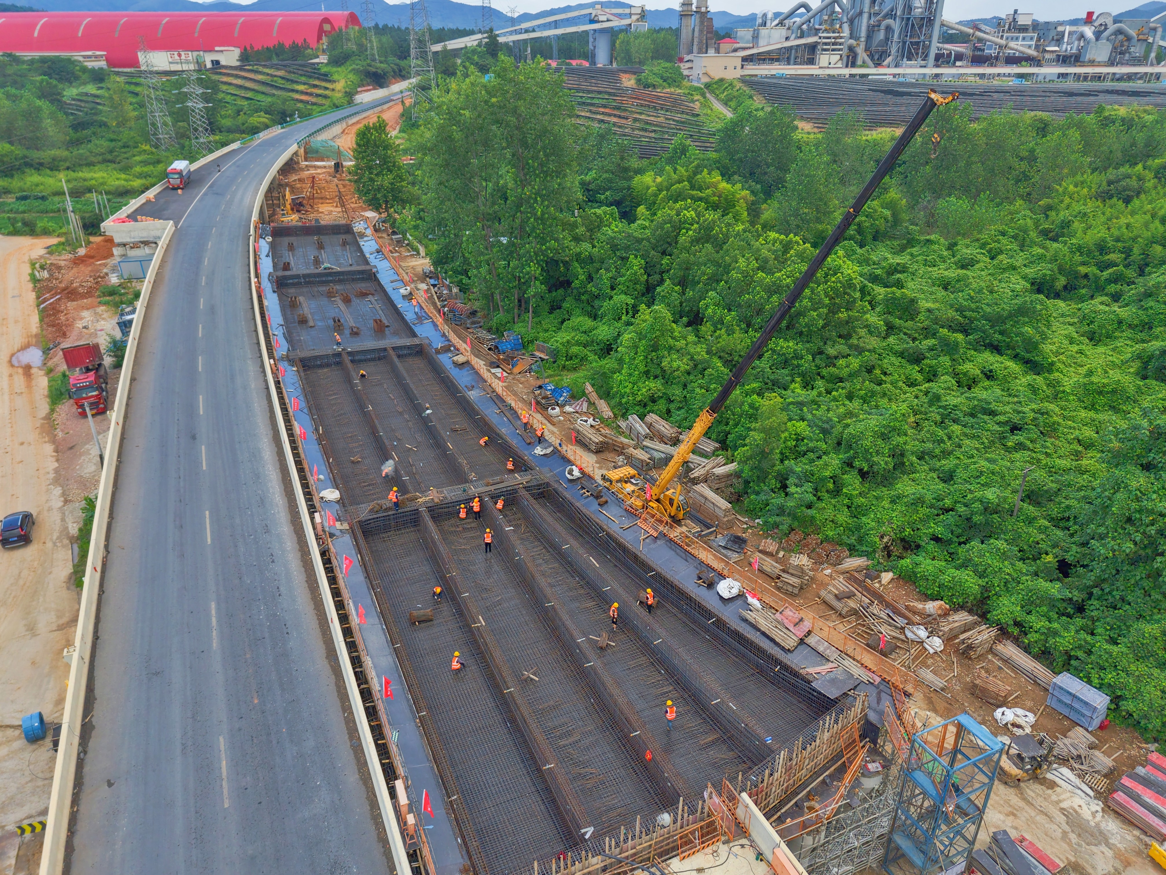 面对“边施工、边通车”的特殊施工环境,项目团队坚持“既要保进度,更要保畅通”的原则,采取半幅交替施工模式,将施工区域划分为若干个作业断面,同步推进桥梁现浇、沥青面层摊铺等关键工序。王超介绍,目前全线路基工程已完成95%,全线预制梁板桥施工也已全部完成。作为控制性工程,水东四号桥施工进展顺利,目前已完成约85%的工程量,正在进行右幅第五联钢筋绑扎及第六联桩基施工作业。
