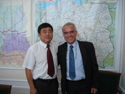 president of aceg, mr.hu yuncheng poses with polish minister of infrastructure, mr. tadeusz jarmuziewicz