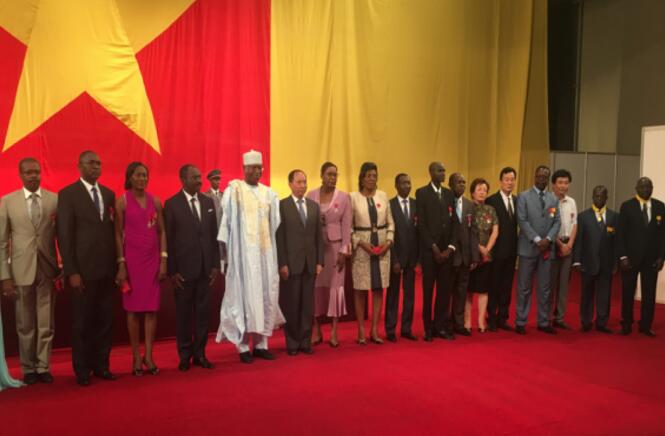 cameroon prime minister mr. philemon yang and minister of culture mr. mouelle kombi, chinese ambassador to cameroon mr. wei wenhua, aceg staff in cameroon construction project were invited to witness the event. prime minister mr. philemon yang awarded mr. cheng fan, mr. wu shengyong and other two staff from aceg construction team the senior honor "knight medal", to compliment their outstanding contribution to cameroon.
