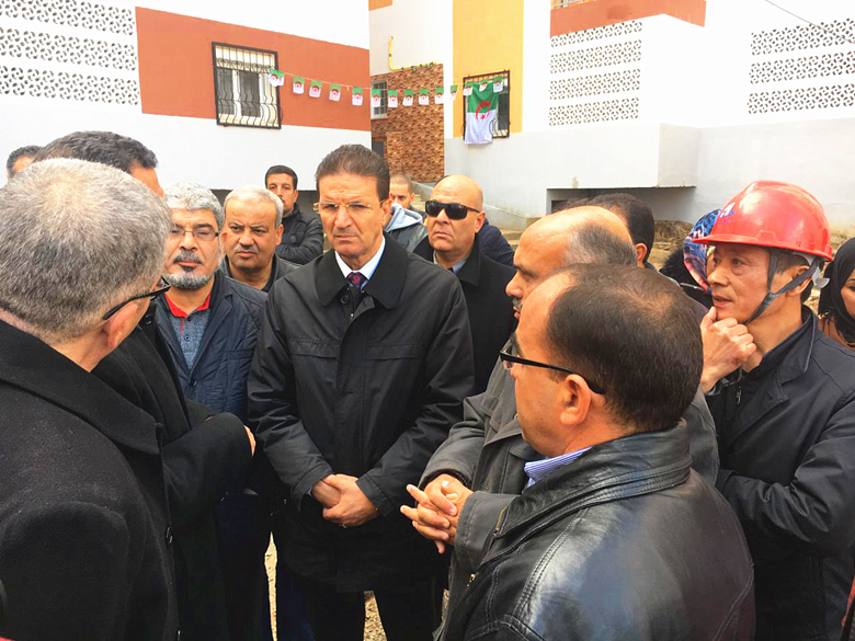 accompanied by mr. zitouni faycal, aadl’s eastern region manager, mr. cazrani, aadl’s director of constantine, mr. lamine, mr. achraf and mr. seik, directors on sites from the employer’s side, and mr. huang huawen, deputy manager of constantine 6000-unit housing project, the delegation has inspected the showroom at plot 25 after they listened to the report by mr. zitouni faycal on project progress and completion plans. the governor spoke highly of aceg’s construction quality and orderly sites.