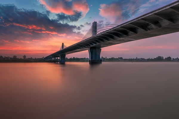 in the construction process of the bridge, anhui road & bridge engineering company insists on using first - class materials and first - class equipments that has resulted in first - class processes so that the first - class qualities are ensured. the project team has actively organized technology innovation activities in the construction processes and gained remarkable results. the high performance concrete has been successfully distributed, used and popularized and a series of technical difficulties have been effectively overcome such as the construction of low tower cable-stayed bridge with rib inclined web, steel tube truss girder bridge, soft subgrade phc pipe piling and sa class hanging plate guardrail. the construction method of high anticorrosion and wear-resisting polyurea coating spraying at the saddle of cable-stayed bridge has been awarded of the construction method of 2014 for highway engineering construction method and the key technology of inverse practice construction for sa class hanging plate steel guardrail and the key technology research of large-span steel tube composite truss beam construction won the third prize of highway engineering science and technology innovation respectively.