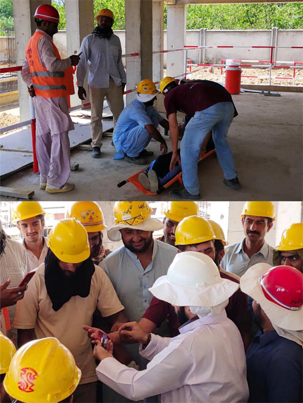 more than 100 staff participated in the fire drill, first aid drill for heat stroke and emergency drill for mechanical injuries at the project sites of the afghan embassy in pakistan.