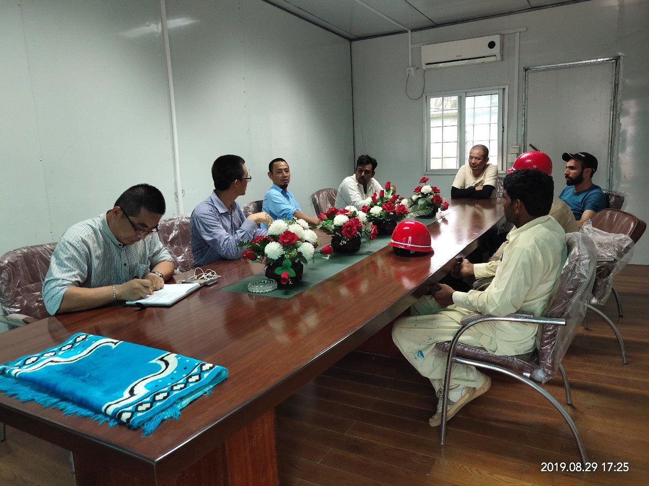 in order to strengthen the communications between chinese and pakistani staff, the project holds a short meeting about ten minutes every day before coming off work time, the overall coordinated working tasks for each job of the next day will be deployed ahead of time to ensure that the daily production work orderly and effectively and it also helps a lot to promote the localized managements.