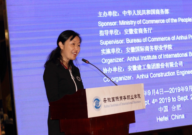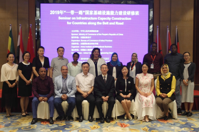 on the afternoon of september 23rd, 2019, the 20 - daylong seminar of infrastructure capacity building for the nations along “belt and road" (b&r), 2019, concluded with great success and the closing ceremony was held at fengda international hotel in hefei, the capital city of eastern china`s anhui province. this event was sponsored by the ministry of commerce of china and directed by anhui provincial department of commerce and co-organized by anhui construction engineering group and anhui international business vocational college and the members of the seminar attendees from 5 nations. ms. xing yingmei, vice general manager of aceg overseas branch delivered a speech.
