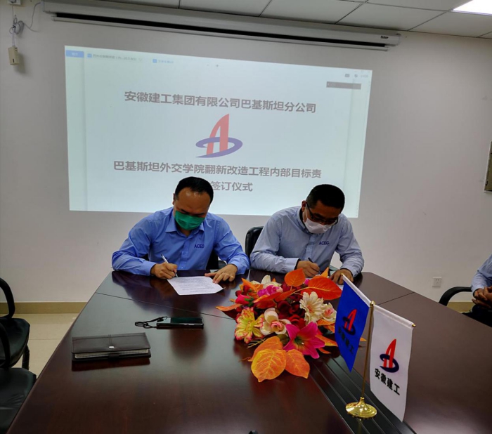 at the meeting, an internal target responsibility statement was signed between mr. hu haitao, on behalf of the branch, and mr. pan zhengqiang, on behalf of the project. mr. hu haitao,thereafter,has praised all the staff working for the project for sticking to their posts and reasonably arranging the production tasks amid the current epidemic situations. he stressed that winning the rehabilitation project of the pakistani foreign service academy was an important achievement for the branch staff in such a difficult time and the project would strictly adhere to the standards of "marketization, contracts, nomlalization, systematism, standardization, refinement and informatization", to enhance the ability of management and fully mobilize the employees'' subjective initiatives in ensuring the quality and schedule targets under the contract.