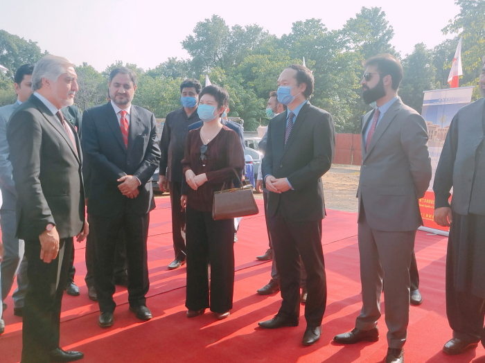 h.e. pang chunxue, charge d`affaires of chinese embassy in pakistan, accompanied dr. abdullah abdullah during the inspection.