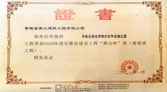 the “huangshan cup” is regarded as the highest honor award of construction engineering quality in anhui province, qualified candidates would be all kinds of projects that had been built and put into use with a certain impact and quality reached the highest level in the province. “huangshan cup” awards are conferred once a year by anhui provincial construction supervision and engineering quality association.