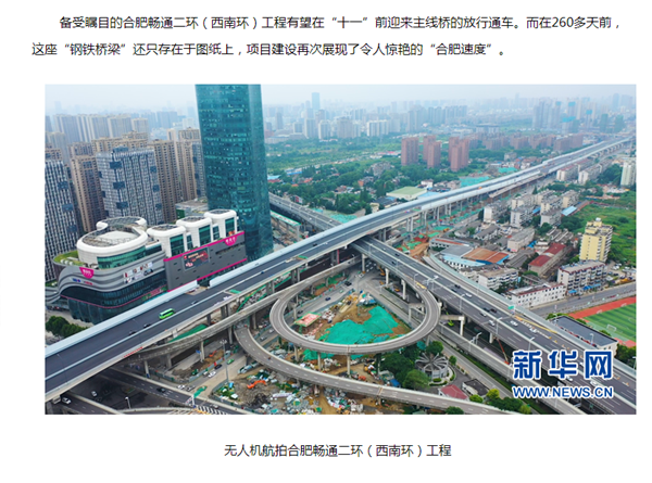 the high-profile unimpeded second ring road south (southwest ring-road) project is likely to be completed and open to traffic before october first - the national day,it has been no mean feat, said the project expert, some 260 days ago however, the huge steel bridge existed only on the drawings and the construction process of the project once again shows the amazing “hefei speed”.