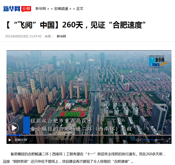 on august 28, china xinhua news network - one of the nation’s mainstream media - once again focused on the project - unimpeded second ring road south (southwest ring-road) with a report under the title of “drone’s eye view around china 260 days witnessing‘hefei speed’”. the project has been entitled as a key engineering construction project in hefei – the capital city of eastern china’s anhui province, contracted by aceg road and bridge construction engineering company limited - one of aceg’s subsidiaries, professional contractor of road and bridge engineering and construction.